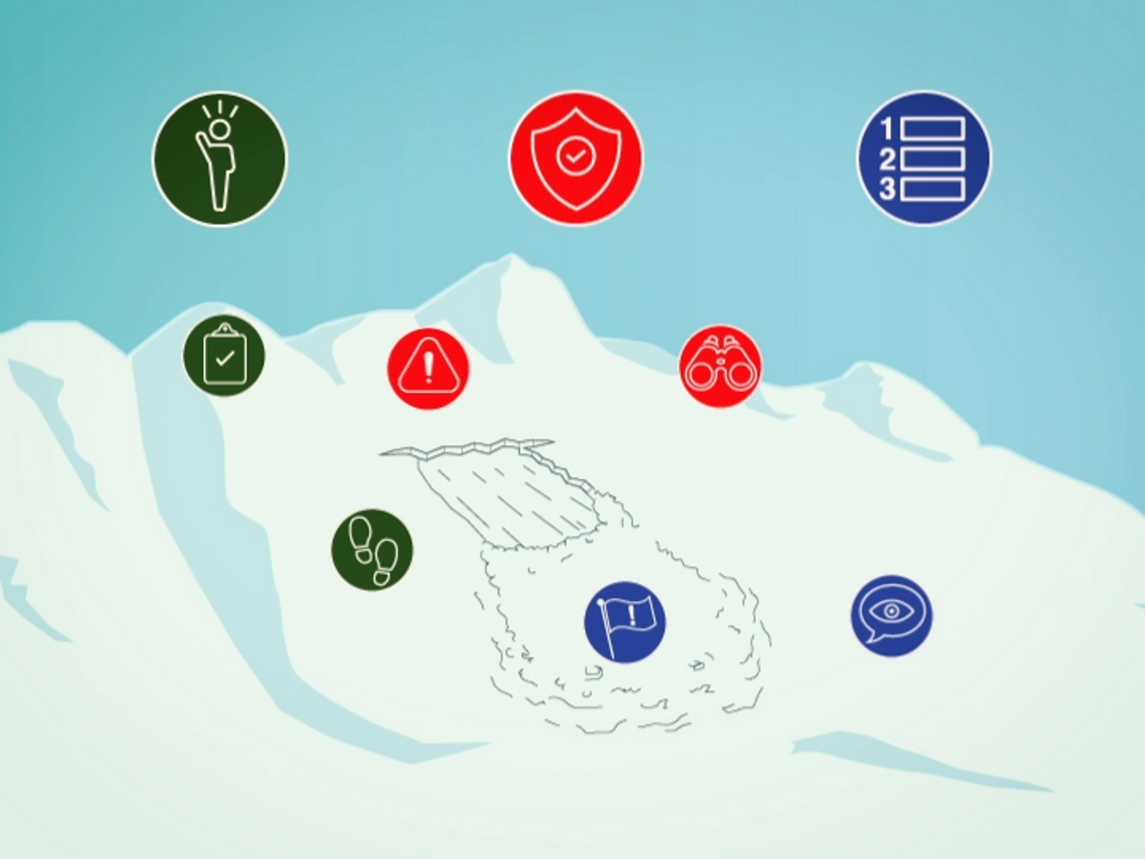 Lorsqu’une avalanche survient, un certain nombre d’actions cruciales doivent être rapidement posées avant que la recherche démarre. Une personne désignée doit prendre en charge l’organisation du sauvetage, un dénombrement doit être effectué pour déterminer combien de personnes manquent à l’appel, et les dangers présents sur le site doivent être identifiés.